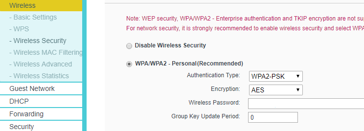 Step 2: Once done, go to Router admin page and then go to Wireless and then go to Wireless Security.