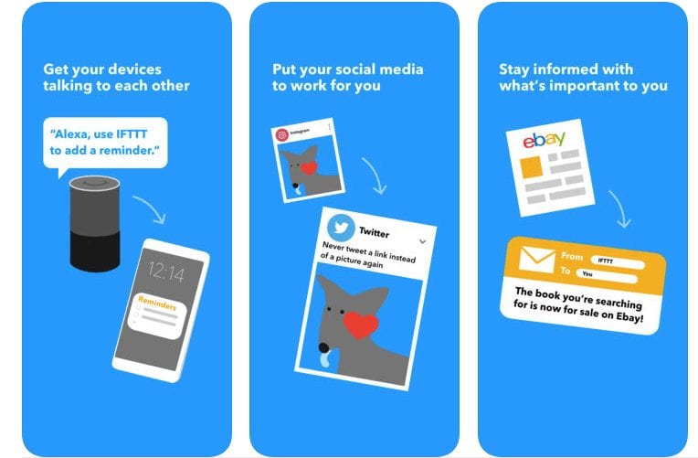 IFTTT stands for If This, Then That. This app enables internet-connected apps, services, and devices to work together so that you no longer need to access them individually to complete an action.