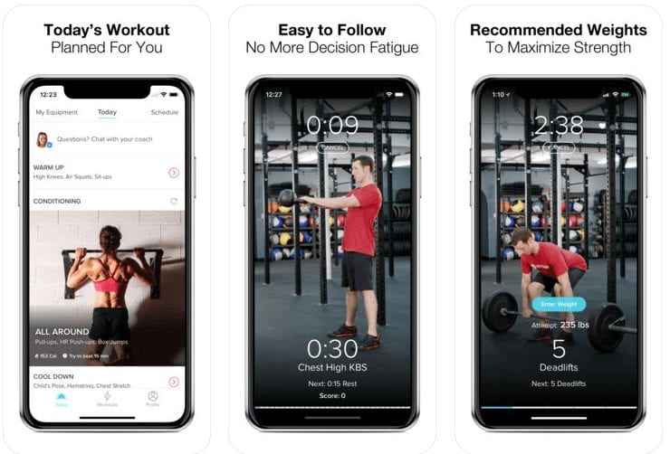The app is built around high-intensity interval training (HIIT) exercise routines done for less than 20 minutes per day only three times a week. Workouts incorporate a broad range of exercises and are customized to each users goals. You can work out in a gym or at home and use your body weight, actual weights or things around the house for the strength training sessions. The app tracks calories burned and a functional map shows what areas of the body you have exercised.