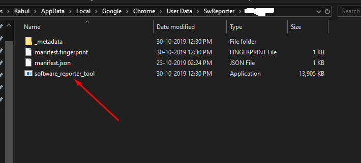Step 2: Select software_reporter_tool.exe > and delete it. This will delete the Software Reporter Tool.