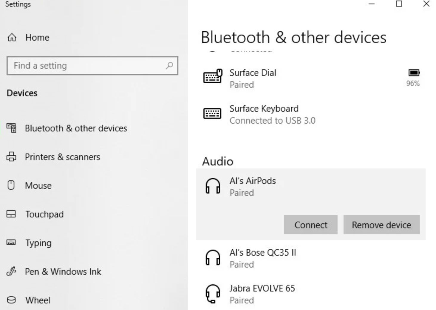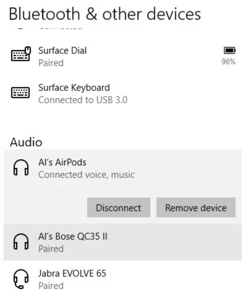 Unpairing AirPods from your Windows 10 PC