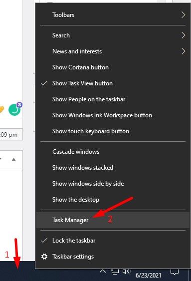 Step 1: Right-click on the taskbar and then select Task Manager from the list.