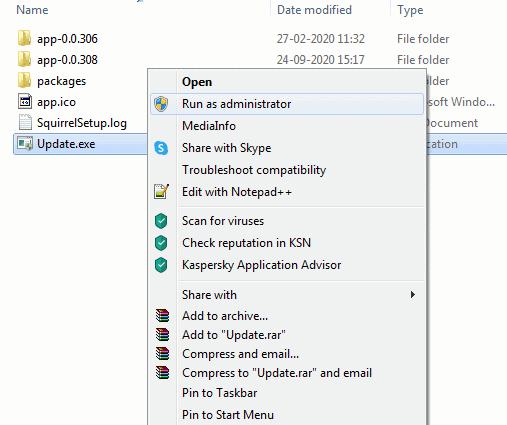 Step 4: Right-click on update.exe and then choose open with the administrator.