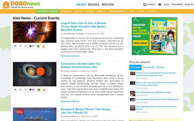 DOGOnews articles are blog packets, they are short and concise, written in style suitable for children to understand core and complex subjects. They are accompanied by images and provide a daily update of data for parents, teachers, and children to share, understand and enjoy.