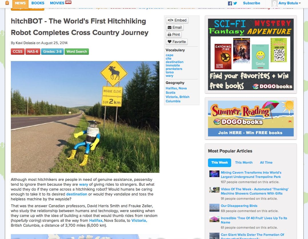 - All articles come with questions to “test” the reader’s comprehension of what was read