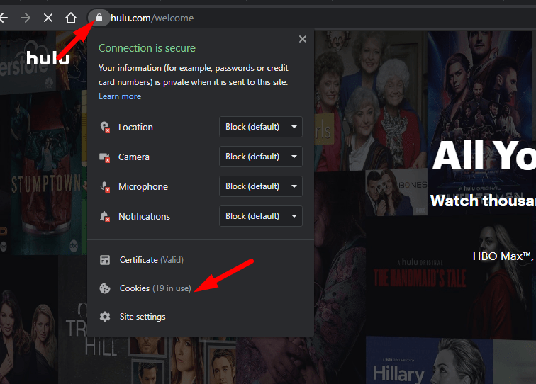 To remove Hulu cookies, click on the lock icon on your browser.