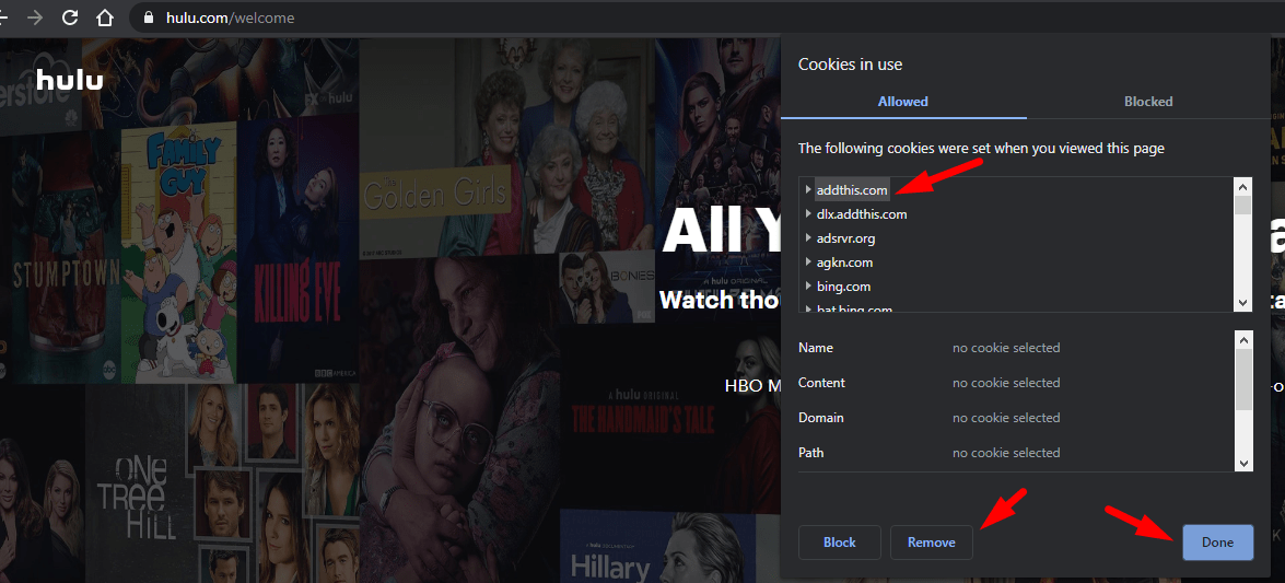Now remove all the cookies listed here and then click on done.