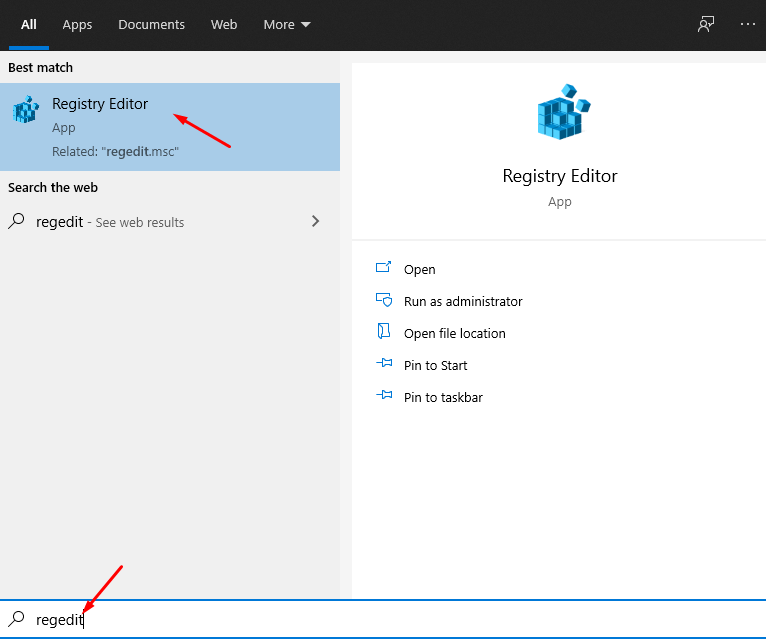 Step 1: Open the Start menu and then search for “Regedit” > press enter.