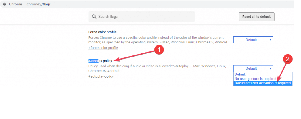 3. From the Autoplay Policy section, opt for the Document User Activation is Required option.
