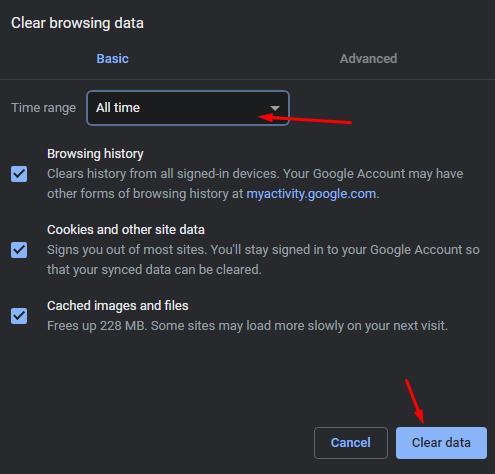 4. Click on all-time and then clear cookies.