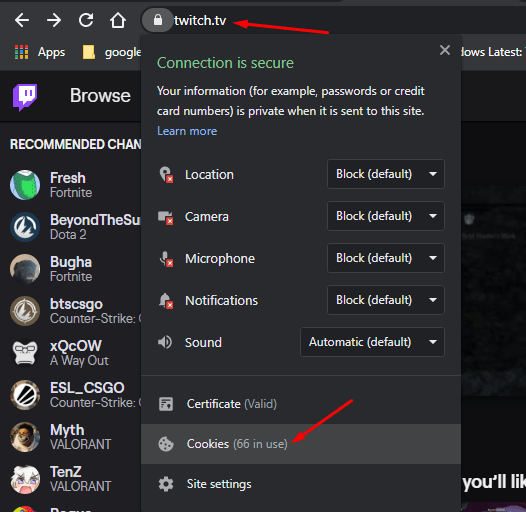 Step 1: Open the Twitch website on your Google Chrome browser and then click on the lock icon.