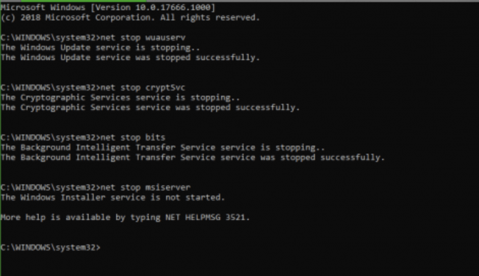 This will stop all the Windows Update Services which are running in the Background.