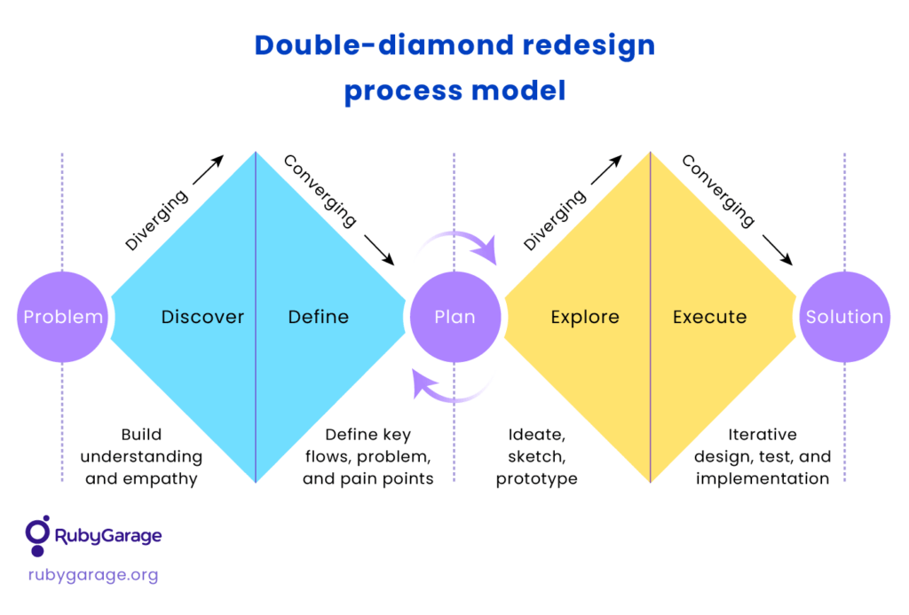 The Double Diamond model perfectly fits redesigns of any scale, from a single feature update to a complete product revamp.