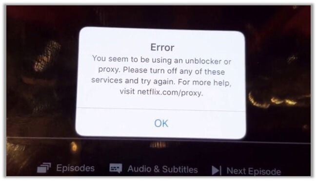 Using an appropriate VPN for Netflix is mandatory, otherwise, your screen will be notified by the following error message;