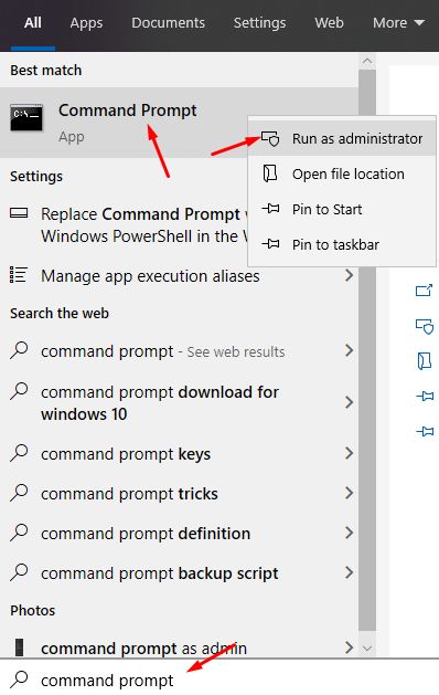 2) Type in the word cmd or control in the search box to find the Command Prompt. Open the cmd or command prompt as an administrator by right-clicking and selecting the Run as Administrator option.