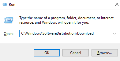 2 ) In the invoked Run Box, copy the following directory path: C:\Windows\SoftwareDistribution\Download and press the Enter key while the cursor is on the OK button.