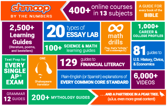 Shmoop is a complex it is a great library, a test center, a classroom, and an online app system all rolled into one. Shmoop is underestimated, and it is not reaching its full potential. This is a great add-on to any high school curricula and the concept of a teacher’s aide add-on for lit. students are great. If they expanded out to the sciences, it would become a global hit overnight.