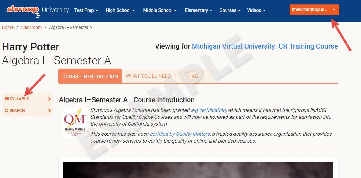 This stab shows you the different licenses you have to access the site and all its features. The tabs in this section include navigation to tests, teaching guides, courses and also to the Shmoop university page.