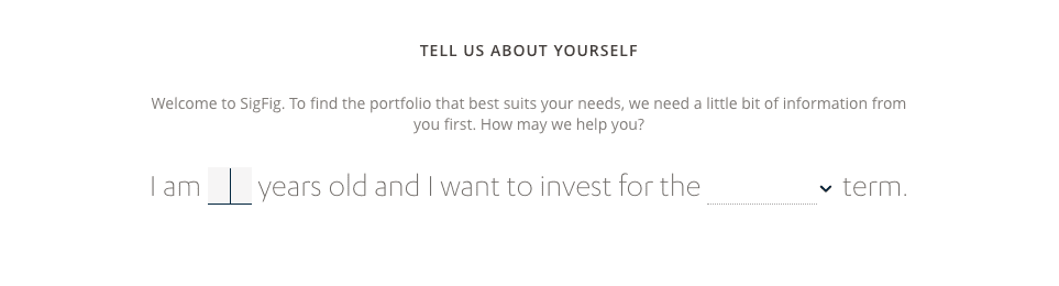 To open a SigFig managed account, you’ll be prompted to answer a series of questions including your age, how long you wish to invest (less than 5 years, 5-10 years, or 10-plus years), household income, amount of your liquid assets and income that you save and risk tolerance.