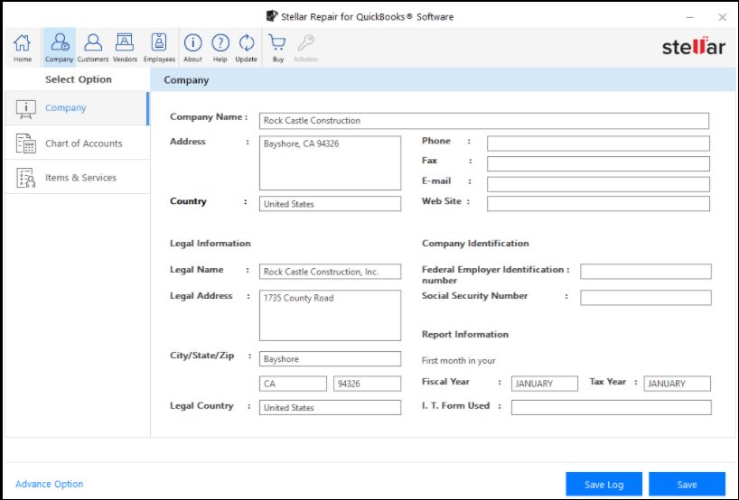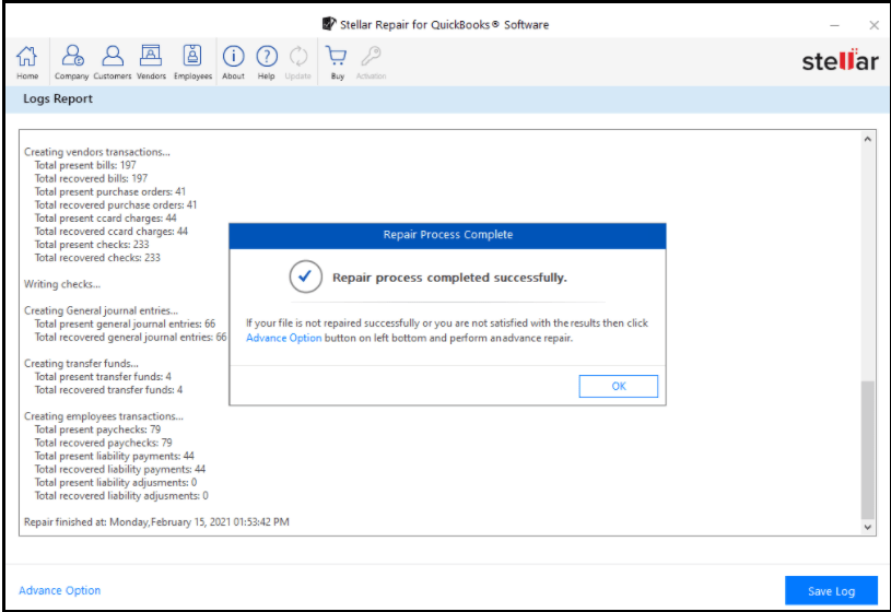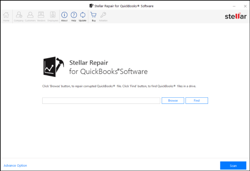 Note: If you’re not satisfied with the repair results, click on ‘Advance Option’ at the bottom of the screen. The option uses the QuickBooks® backup file (QBB) and the company file (QBW) for the repairing process.