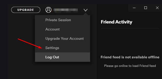 2. Open the Spotify Settings from the down arrow from the app or by pressing the Ctrl and P keys simultaneously.