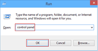 Step 1:- Press the Windows Key and the R key together to get the access of Run Dialog box. In this box, you have to type Control Panel and then hit the Enter button.