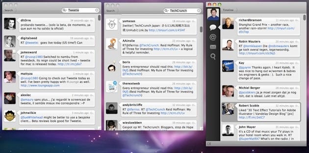 This is the Twitter client that all Mac users have been waiting for. It is much more advanced than the basic Twitterific. On the other side of the scale are the two resource hogs; TweetDeck and Seesmic Desktop that use Adobe’s AIR platform, and we all know where that leads to. They are great and full of amazing features, but their presence creates some UI issues and does eat up a lot of Mac’s resources making operating other apps an issue.