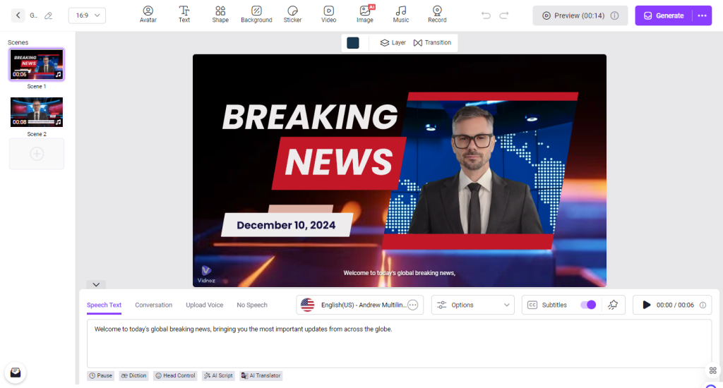 Finally, click the “Generate” button to start the video creation process. After your video is ready, click the download button to export it in popular video format.