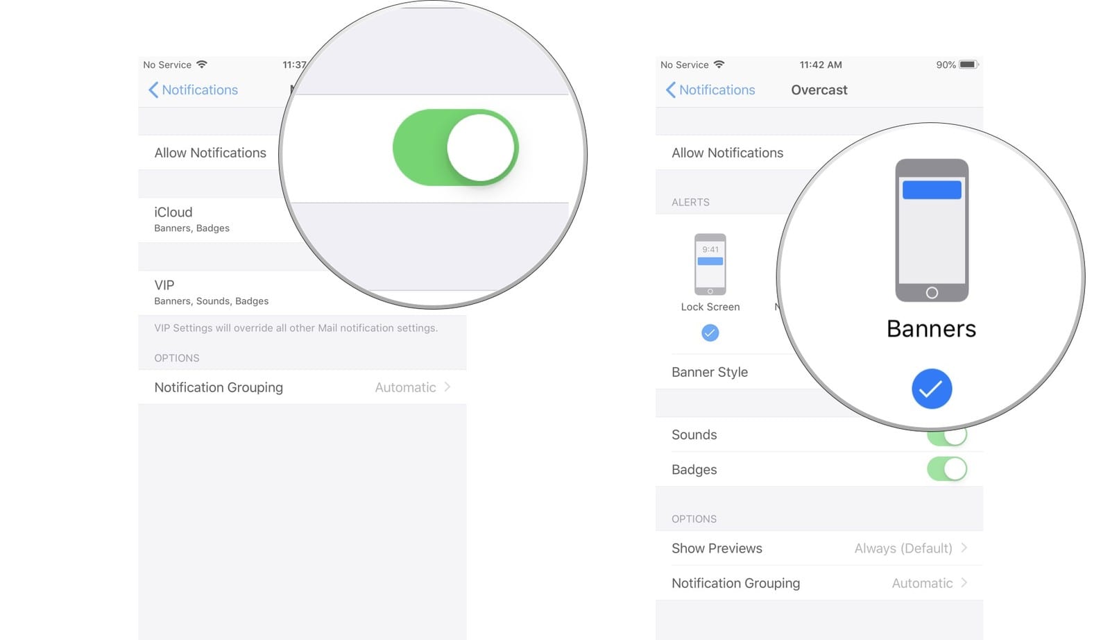 Users see push notifications on iOS as banners on the lock screen and on the notifications board as well.